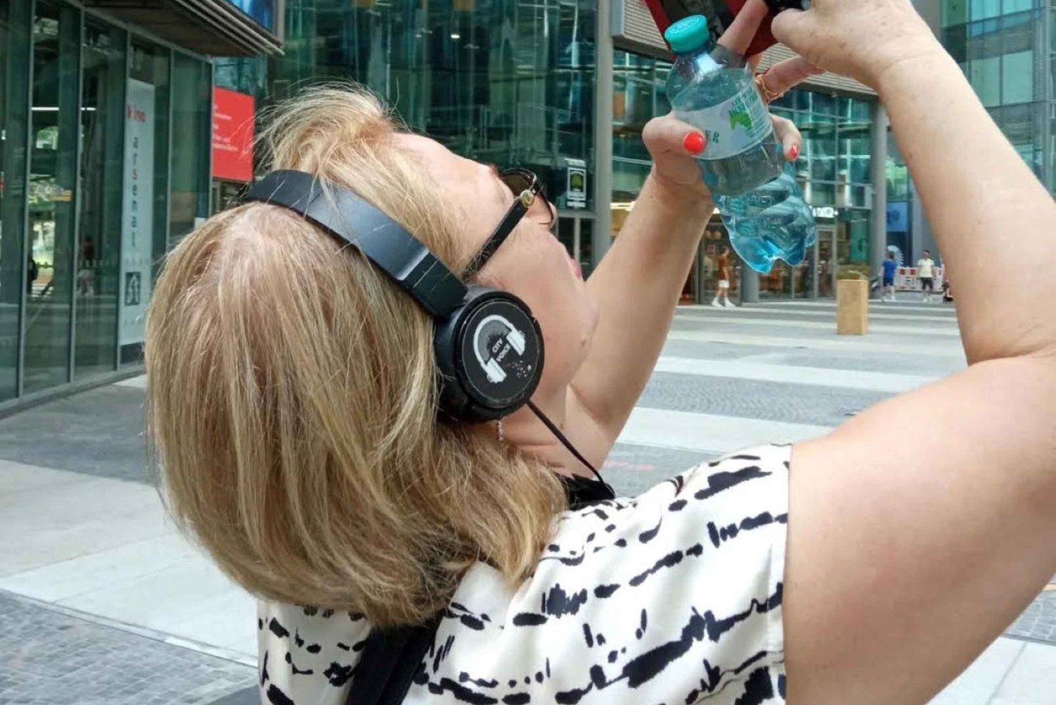 - Tus auriculares reproducirán una audioguía mezclada con música