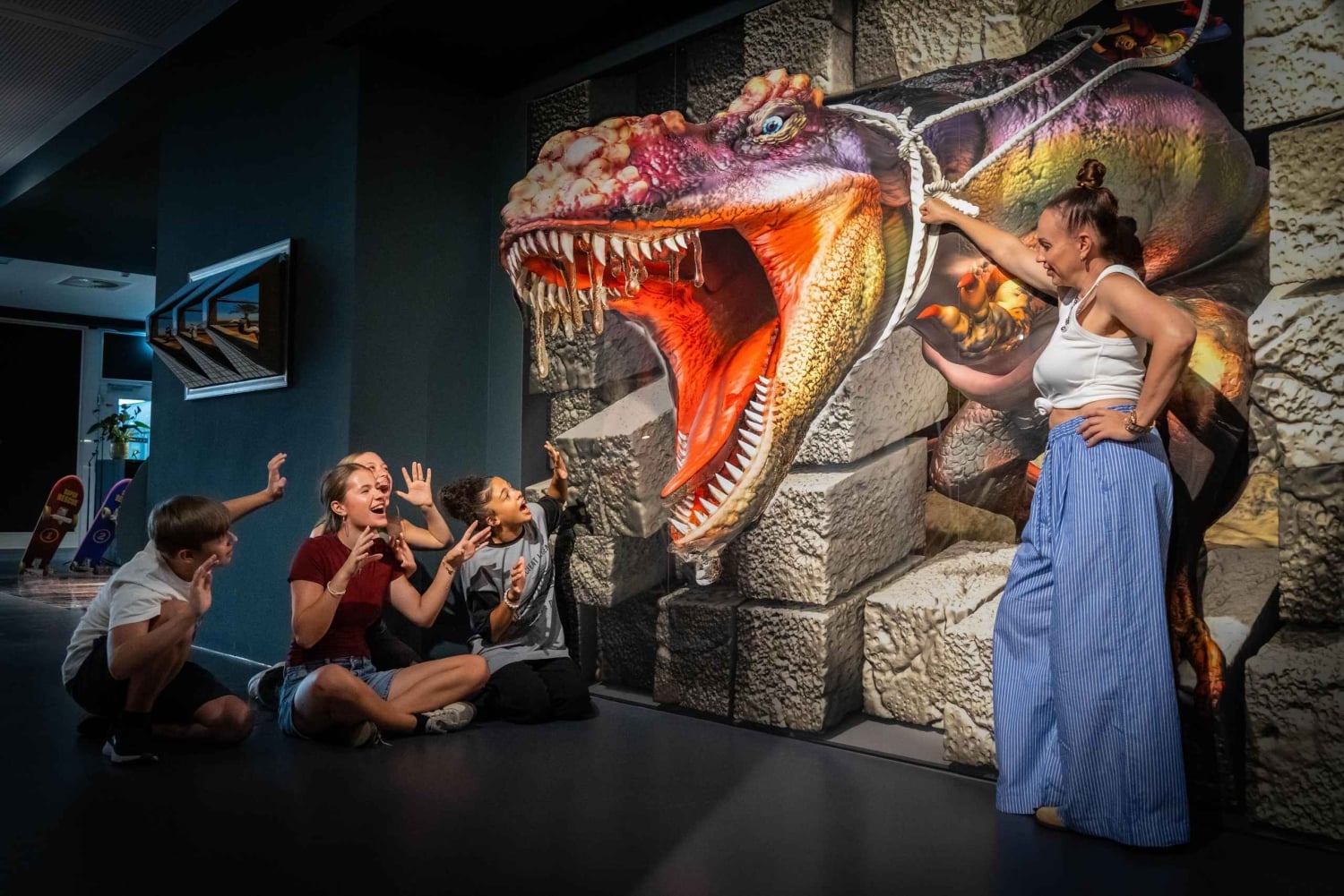 'Sometimes it's breathtaking, sometimes dangerous and sometimes just totally crazy: during a boat tour on the Spree, a whale suddenly appears in front of you. The miniaturization machine shrinks you. You are almost eaten by not just one, but two dinosaurs and save yourself from the fire-breathing Godzilla with a helicopter at the last second. And all this in the middle of Berlin! What's real and what's not? That's what everyone asks themselves as soon as the first photos are taken. The photos on visitors' smartphones blur reality and the dream world. You hold your breath and can't believe how you yourself are immersed in the fantastic world of the images and become a part of it.'