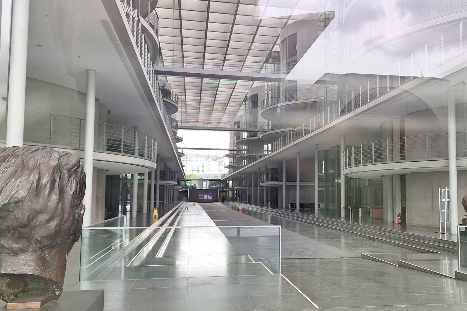 Note: On the English-language tour, a visit to the plenary hall is not possible; the guide tells the stories from the roof terrace. Please choose the tour in German or the tour in English. Translations into other languages are not possible.
