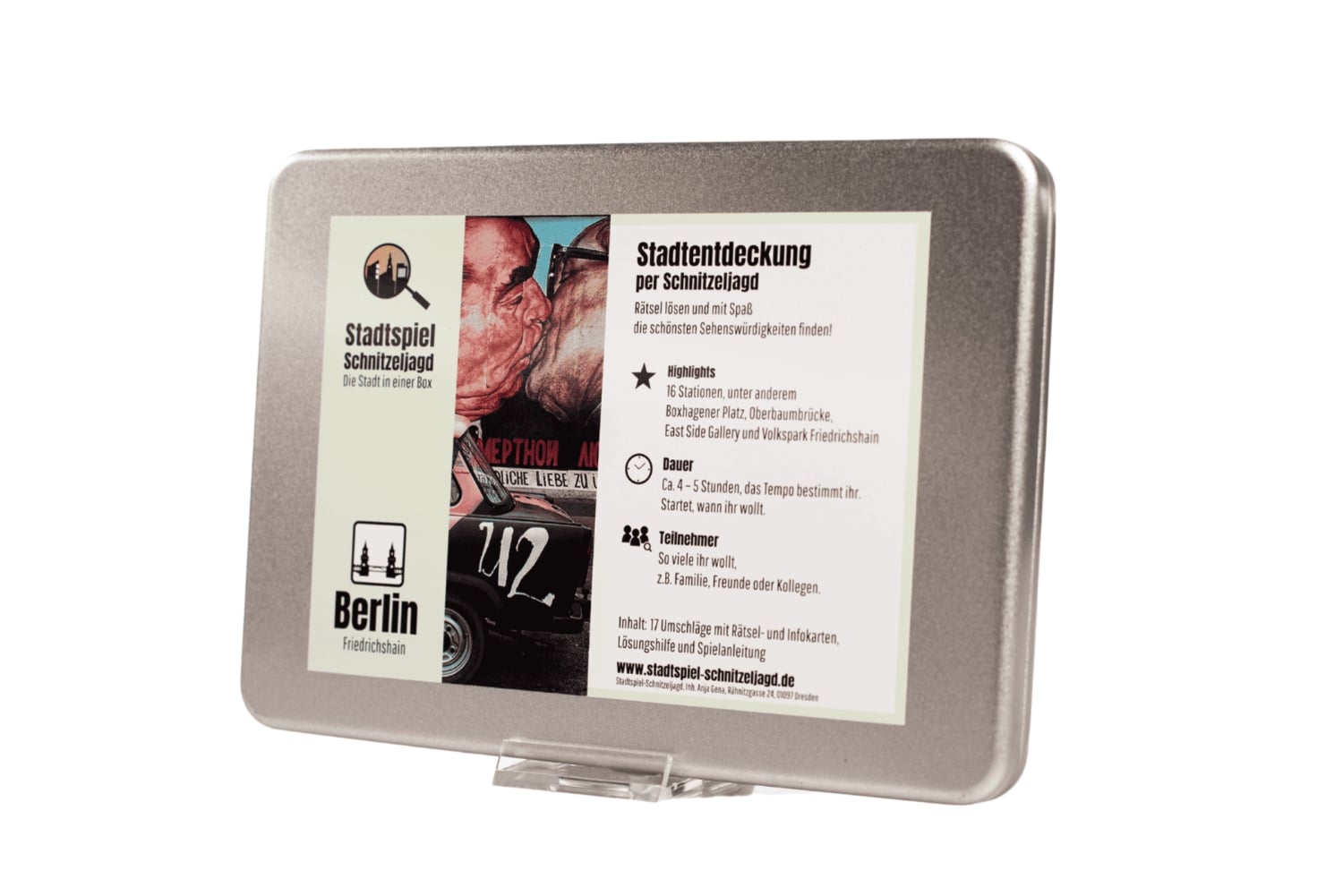 - You will receive the scavenger hunt box via mail. Please note that the shipping can take up to 4 working days (within Germany). Please make sure you provide a shipping address. The scavenger hunt can be experienced after you received the box, regardless of the selected date and time. A pickup of the box in Berlin is not possible!