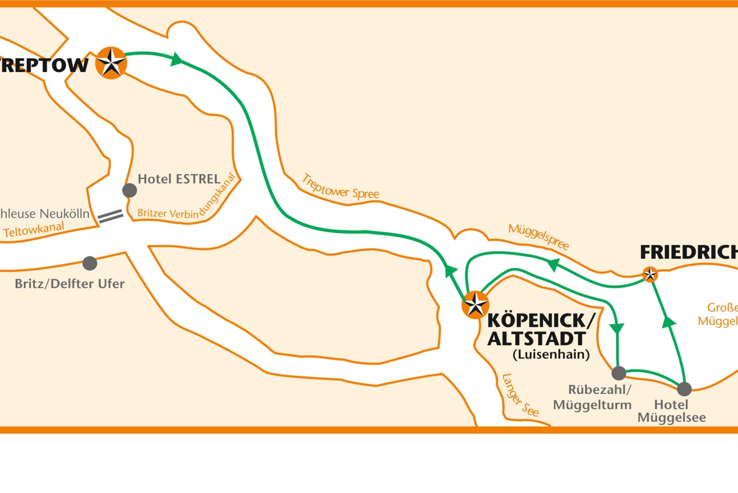 - Set off on a boat tour along the Spree through Berlin-Treptow to the largest of the seven lakes – Müggelsee