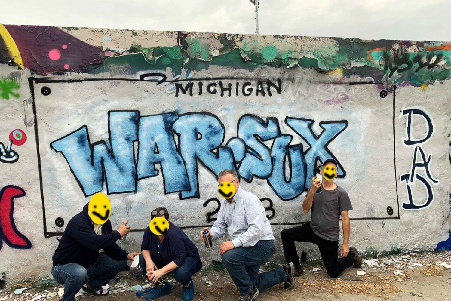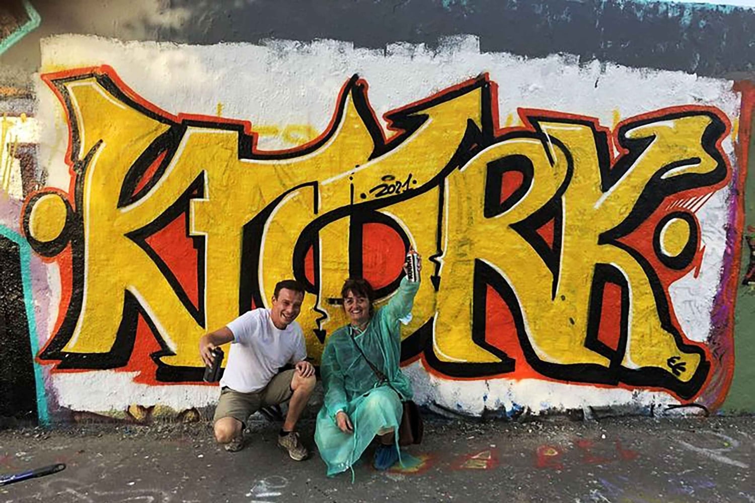 You spray your own piece on the wall under professional guidance. Have fun with the cans in your hand!