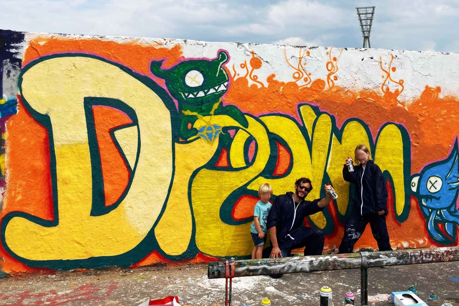 You will learn the typical terms and tools used by writers and become a real graffiti writer for a while. After a first exciting insight into the 'styles', we will move on to the theory of letters and make our first sketches on paper together. After an introduction to using the spray can, you can get started yourself. Our workshop leaders will show you all the techniques on the wall and help you to paint your own 'graffiti piece' with the spray can. Graffiti is an expression of the urban attitude to life. On the wall, you can get away from everyday life with a spray can in your hand, immerse yourself in this art and experience this feeling of freedom for a few hours. Fun, enjoyment and trying out your own creativity - that's what our graffiti workshop in Mauerpark is all about.