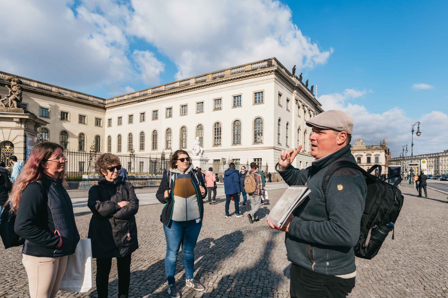 Écoutez l'histoire émouvante de la manifestation de Rosenstraße, où des femmes allemandes ont courageusement tenu tête aux nazis pour exiger la libération de leurs maris juifs. Traversez la Bebelplatz, le site de l'infâme autodafé de 1933 qui a marqué le début de la campagne nazie contre la liberté de pensée et la liberté intellectuelle.