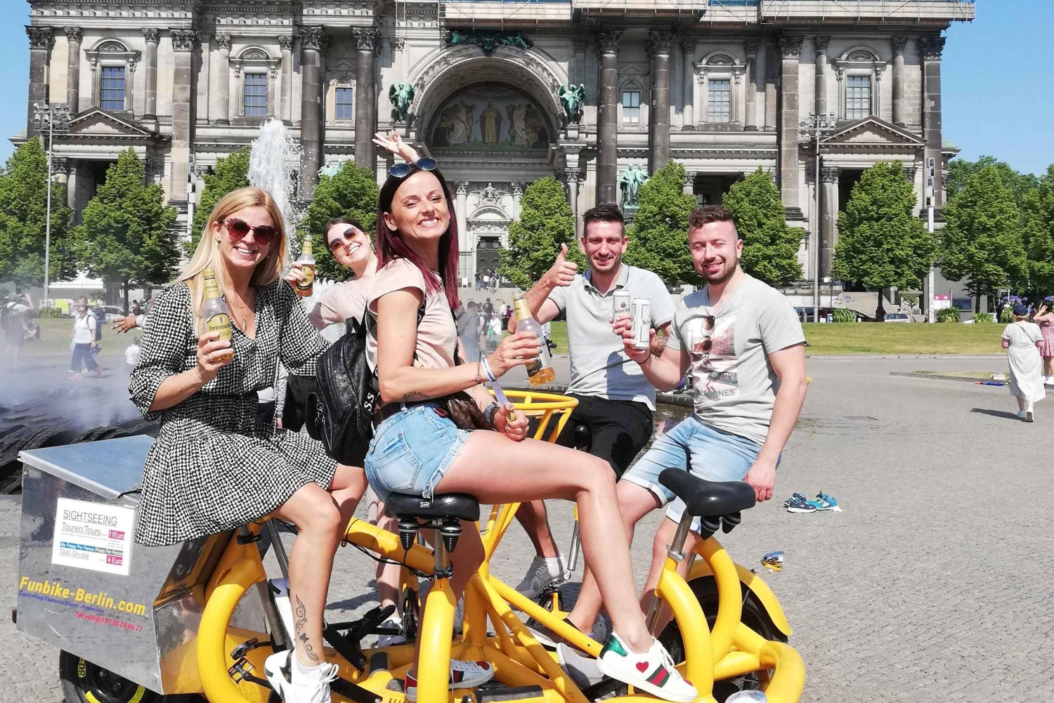 Goditi e scopri Berlino in modo diverso con un tour panoramico privato con le nostre Fun Bike / Teambike / Multi Person Bike a sette posti con motore elettrico, disponibili in diverse lingue.