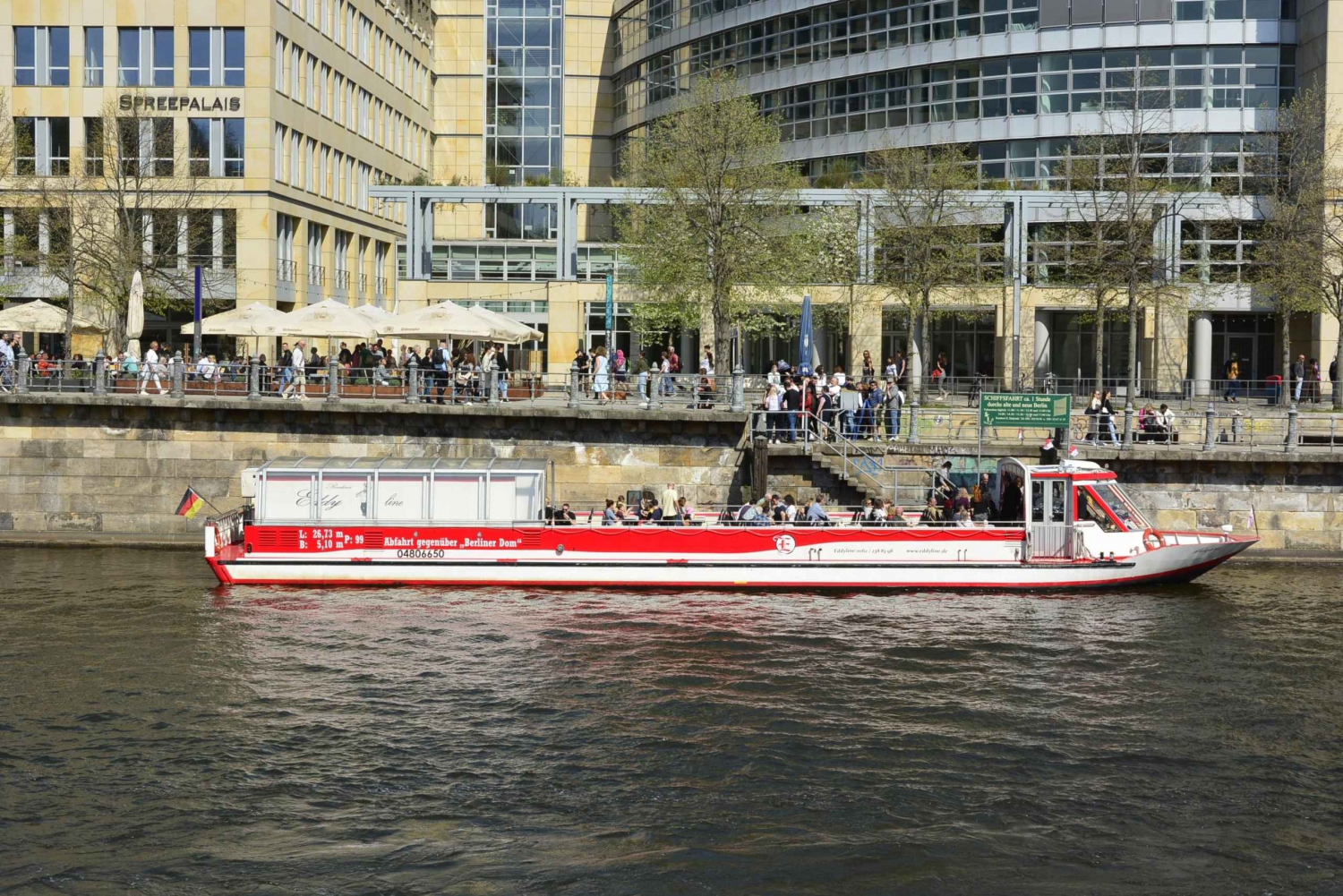ドイツ語と英語のオーディオガイド付きのボートツアーで、ベルリン市内中心部と官庁街を探検しましょう。パノラマ船からベルリンの名所を一望してください。