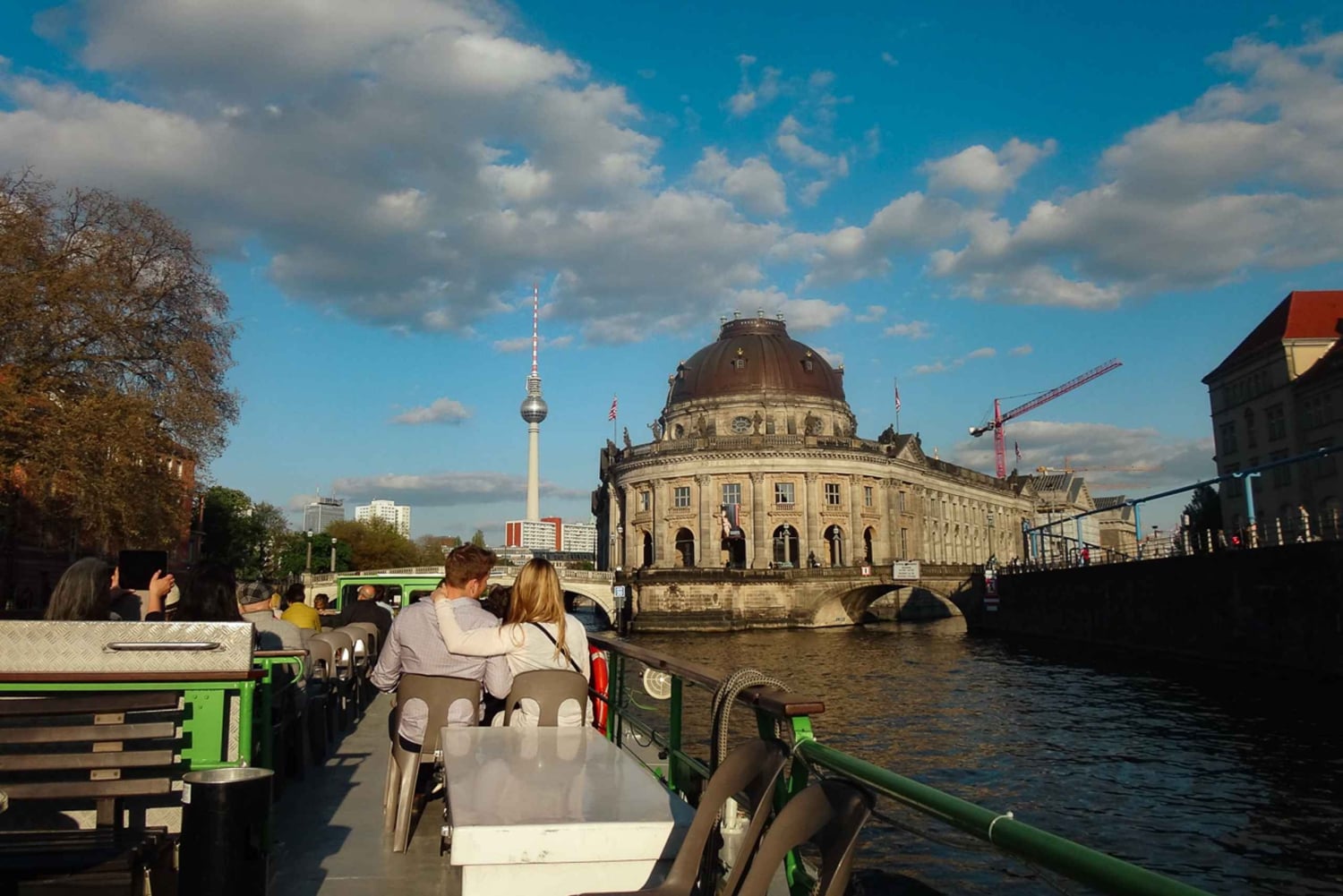 Reis terug naar Berlin-Mitte en bekijk het Nikolaiviertel, de bouwplaats van het paleis en het Humboldt Forum. Het beroemde Museumsinsel begint bij de Berliner Dom. Ga onder de Weidendammerbrug door om het gebied rond de Friedrichstrasse te bereiken met de Schiffbauerdamm, het Tränenpalast (Paleis van Tranen) en het station Friedrichstrasse.