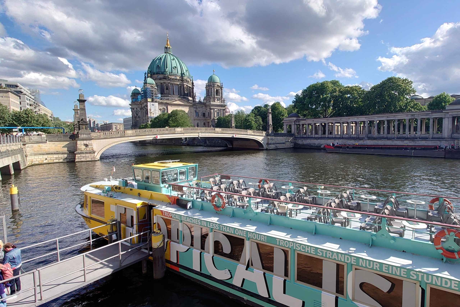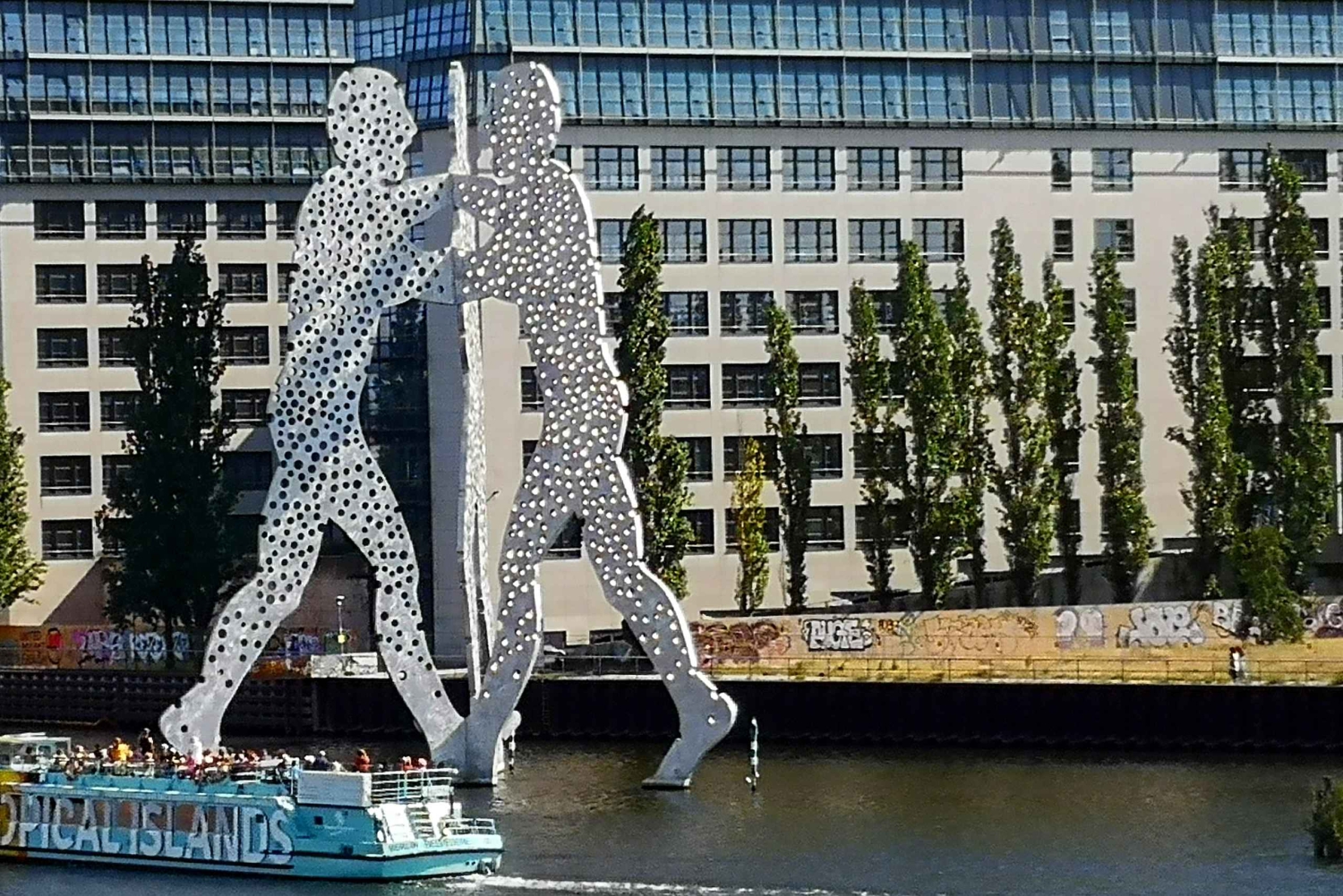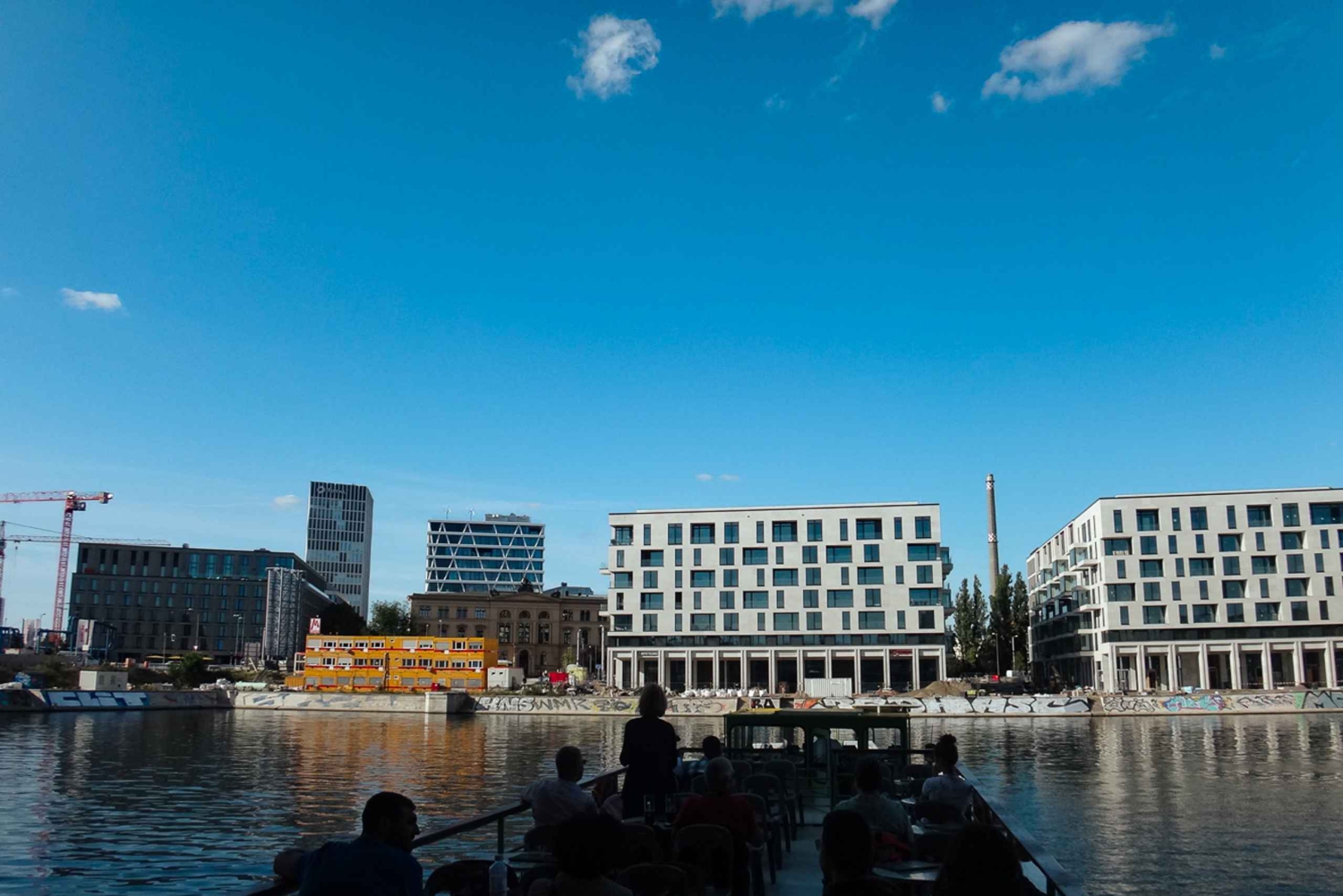 Nadat u langs de bakermat van Berlijn bent gepasseerd - de Mühlendamm-sluis - gaat de tocht verder langs Radialsystem V, een energieforum, Berlin Ostbahnhof en de Mercedes Benz Arena. Vaar onder de Oberbaumbrug door naar de oostelijke haven met zijn vele nieuwe bewoners, waaronder Universal Music, MTV, Coca Cola en Label 1 en 2. U passeert ook het Badeschiff bij Arena Treptow en het Molecule Man-beeld.