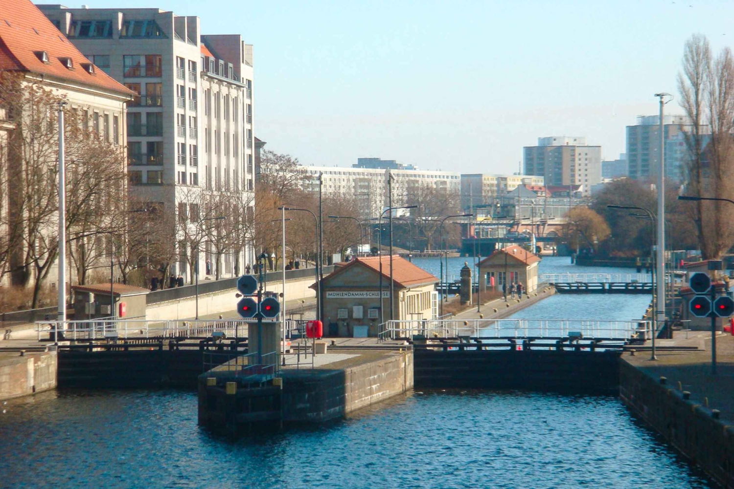 - Bekijk de haven van Treptow en de sluis van Mühlendamm