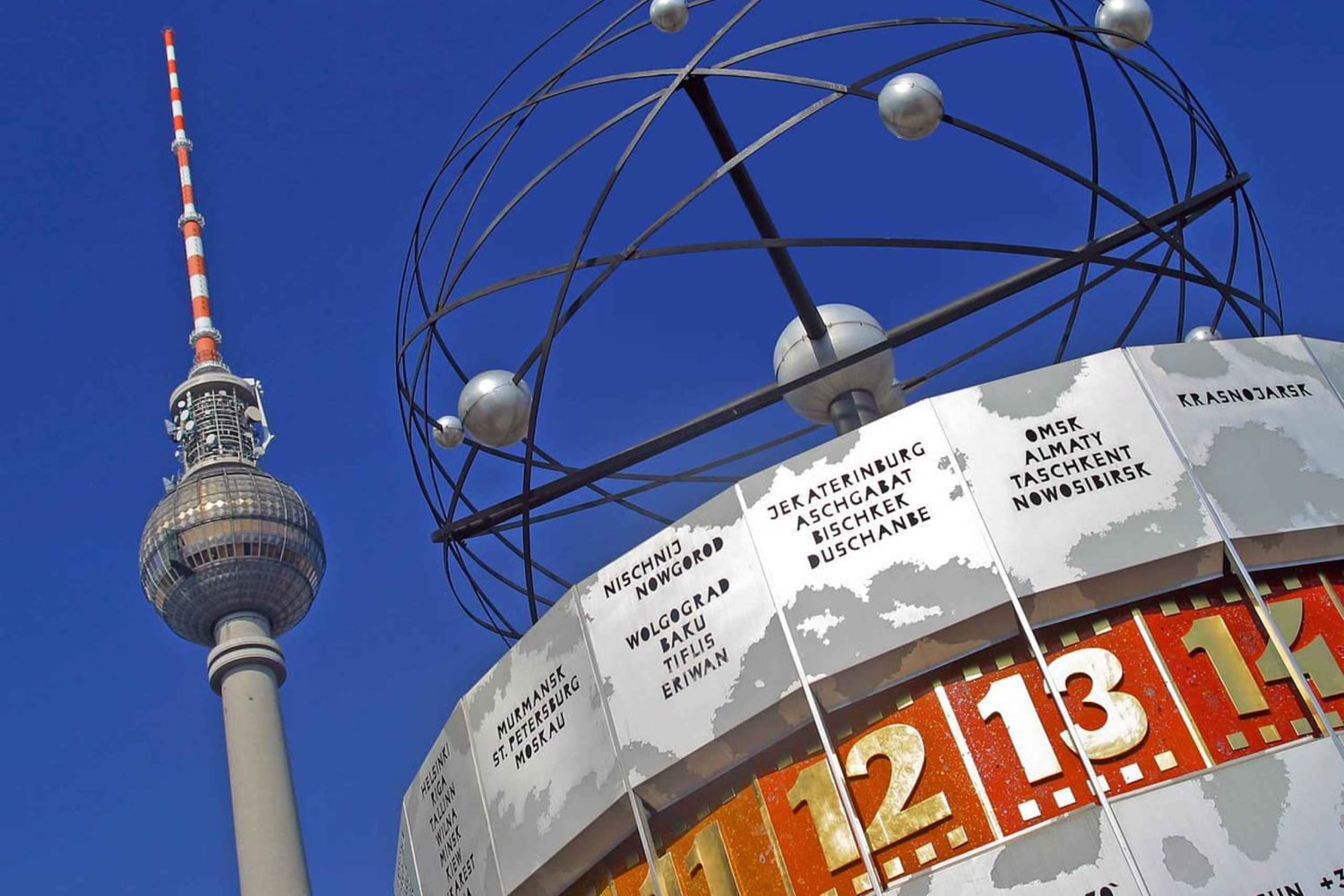 Njut av dagens första kaffe i Fernsehturm (TV-tornet). Ta in den berömda Weltzeituhr (världsklockan) på Alexanderplatz innan du promenerar